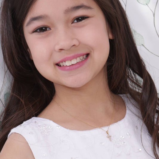 14K Gold-Plated Kids Cross CZ Necklace for Girls Communion: 14 inch