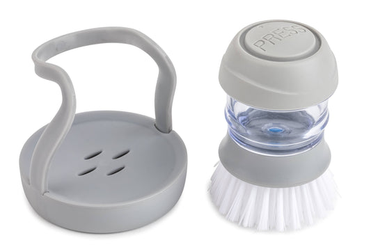 Dispensing Soap Scrub Brush with Holder - Pewter