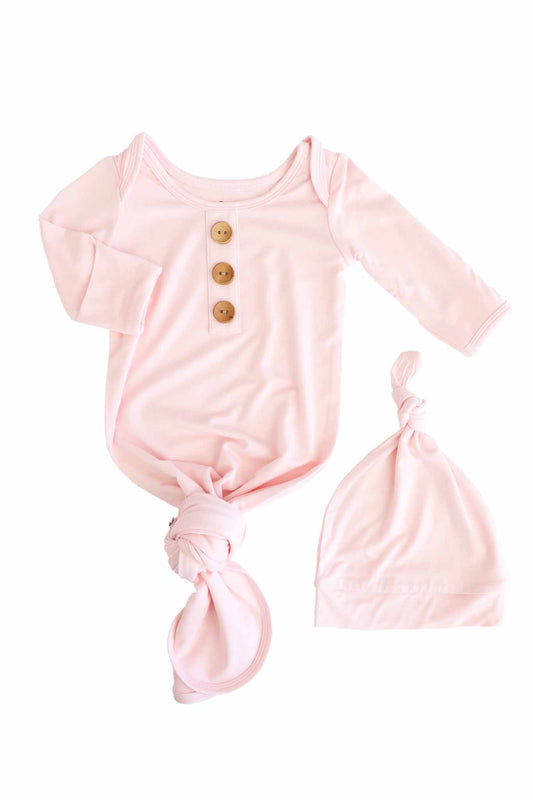 Baby Pink Newborn Baby Knot Gown & Hat Set