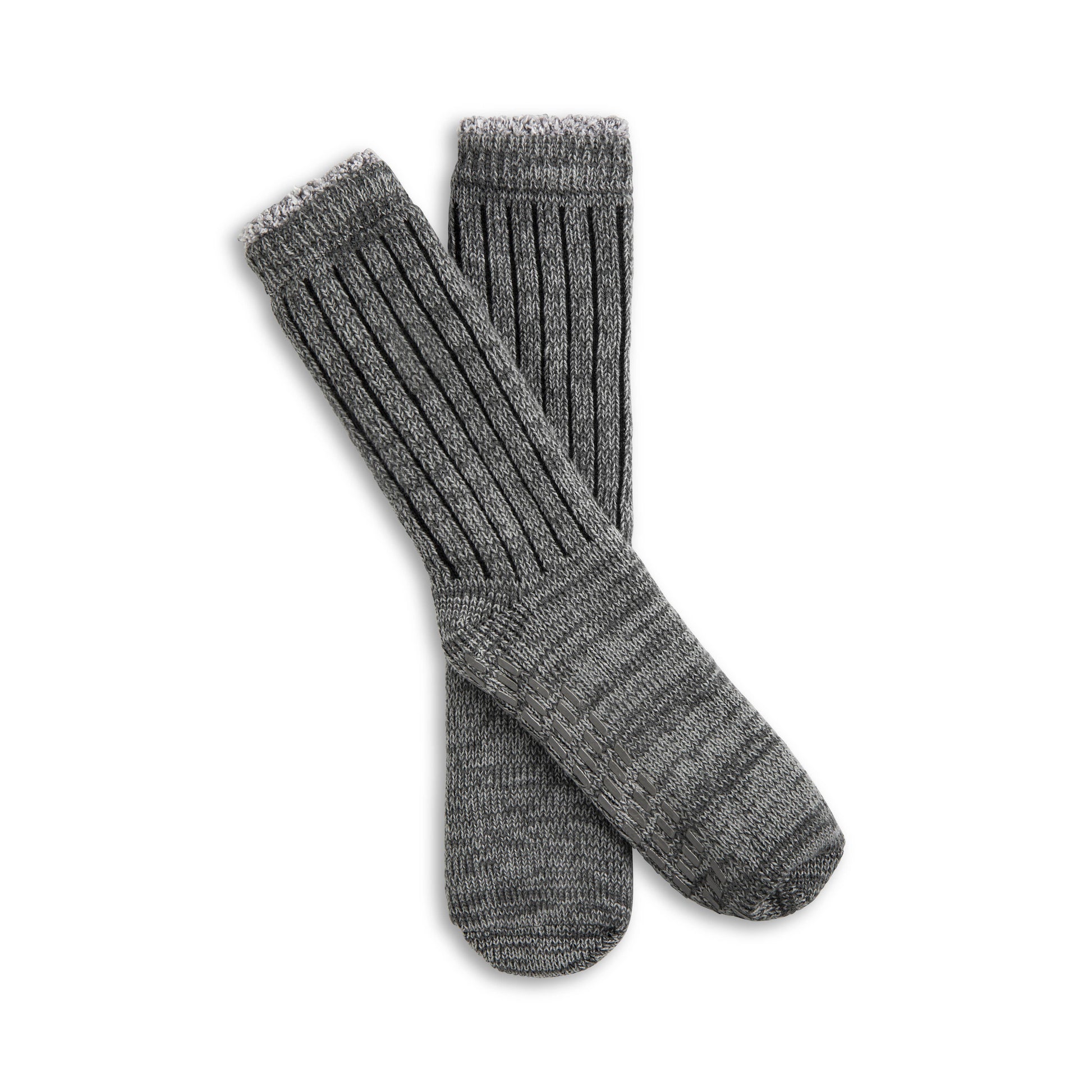 Give your man these soft Giving Collection Men's Slipper Socks in Gray to keep his feet warm on cold nights. Made from a giving knit material in a dark gray and white striated pattern. Give these socks to a brother, husband, or father who is in need of support and comfort. They serve as super soft slippers to wear around the house. The Giving Collection is filled with pieces meant to give extra comfort to those in need. This DEMDACO collection features blankets and apparel that offer soothing warmth to ease a challenging time. Our soft and cozy fabrics and weighted items are ideal for instantly making the day a little bit better. These calf-length socks have a slightly ribbed pattern on the leg and cuff.