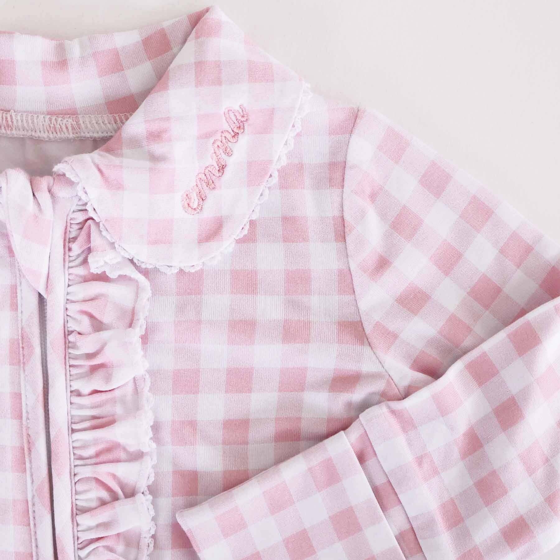 Peter Pan Collar Ruffle Zipper Footie | Rosy Gingham: Rosy Gingham / Non-Personalized / 0-3 months